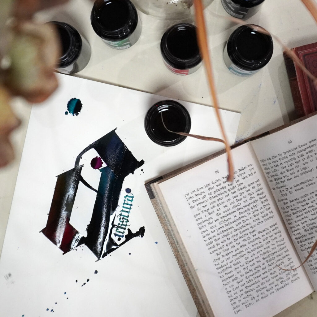 Do jej nauki podejdziemy na dwa sposoby: w wersji podstawowej oraz zaawansowanej – gęsim piórem, ze zmianą kąta nachylenia narzędzia i włączeniem zmiennego nacisku. Będziecie mieli okazję do naostrzenia własnego gęsiego pióra!