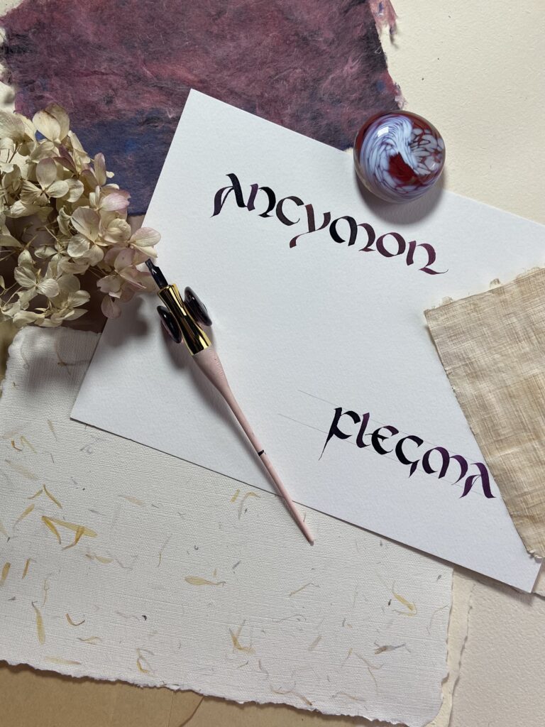 Można się zdziwić, że matematyk zajmujący się na codzień analizą danych uprawia sztukę. To właśnie matematyczne wykształcenie umożliwia mu analityczne spojrzenie i głębokie zrozumienie geometrii litery. Zakres jego umiejętności obejmuje stalówkę ściętą, pędzel i stalówkę ostrą. W tej ostatniej zakochał się do reszty, tonąc w kształtach kursywy angielskiej.