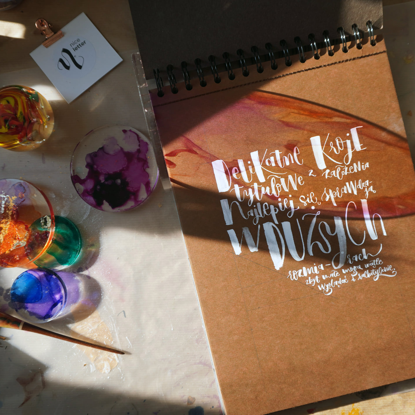- Wprowadzić akwarelę i kaligrafię do swojej pracy zawodowej, możesz wzbogacić swoje projekty graficzne o wyjątkowe liternicze elementy i odręczny gest.